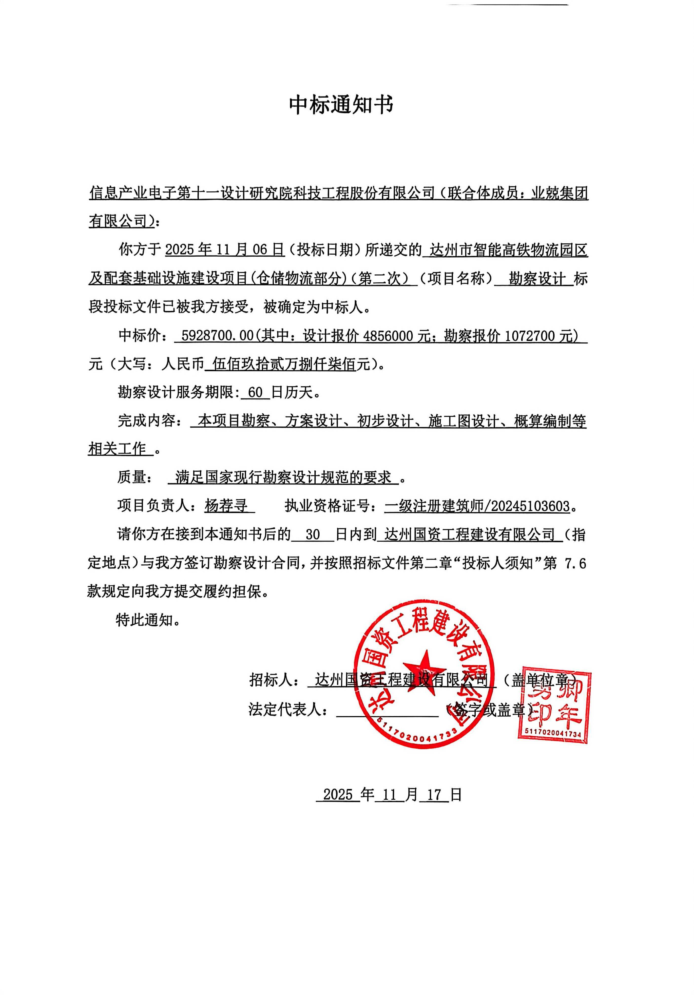 [四川省·达州市·市辖区][公开招标][设计]达州市智能高铁物流园区及配套基础设施建设项目(仓储物流部分)(第二次)勘察设计中标结果公示